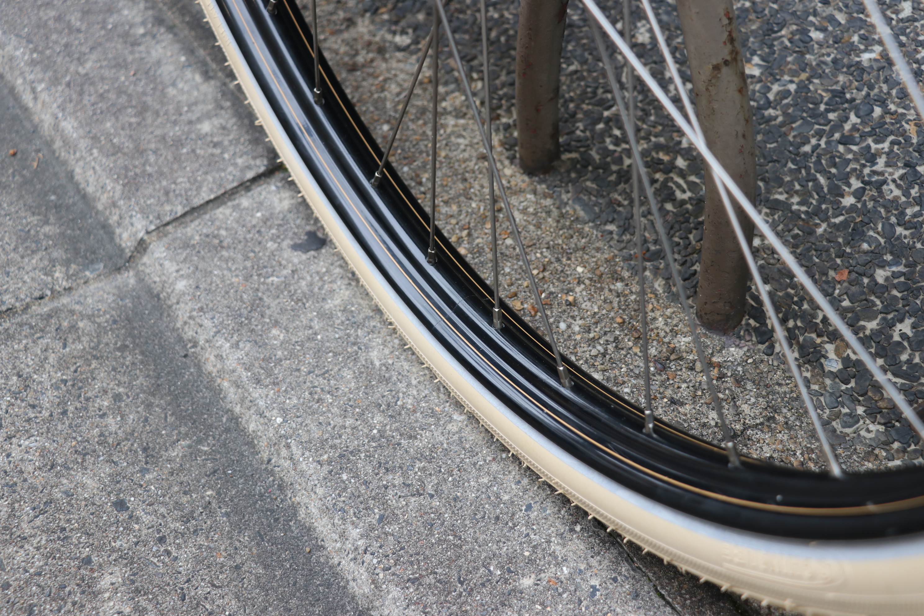 リムには、ブラックアルマイトにゴールドのラインが施工。拘りを感じます。