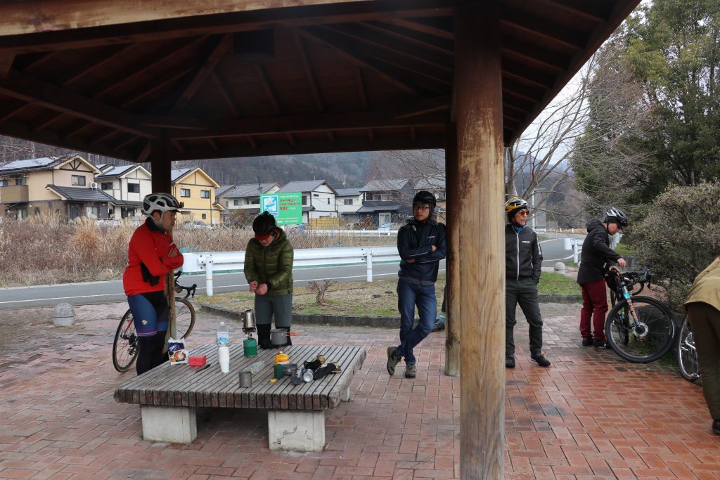 峠を越えて、下りで冷えた体はホットコーヒーで温めます。