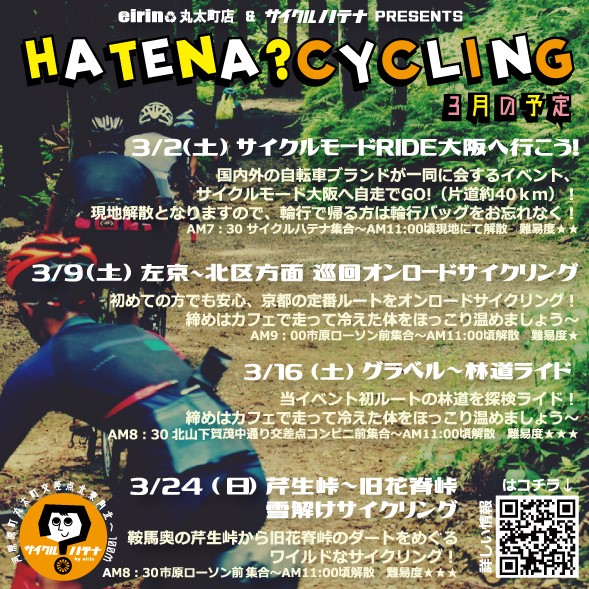 ★eirin丸太町店&サイクルハテナ主催★【HATENA? CYCLING/ハテナサイクリング】 2019年3月の予定 & メンテナンス講習会はこちら