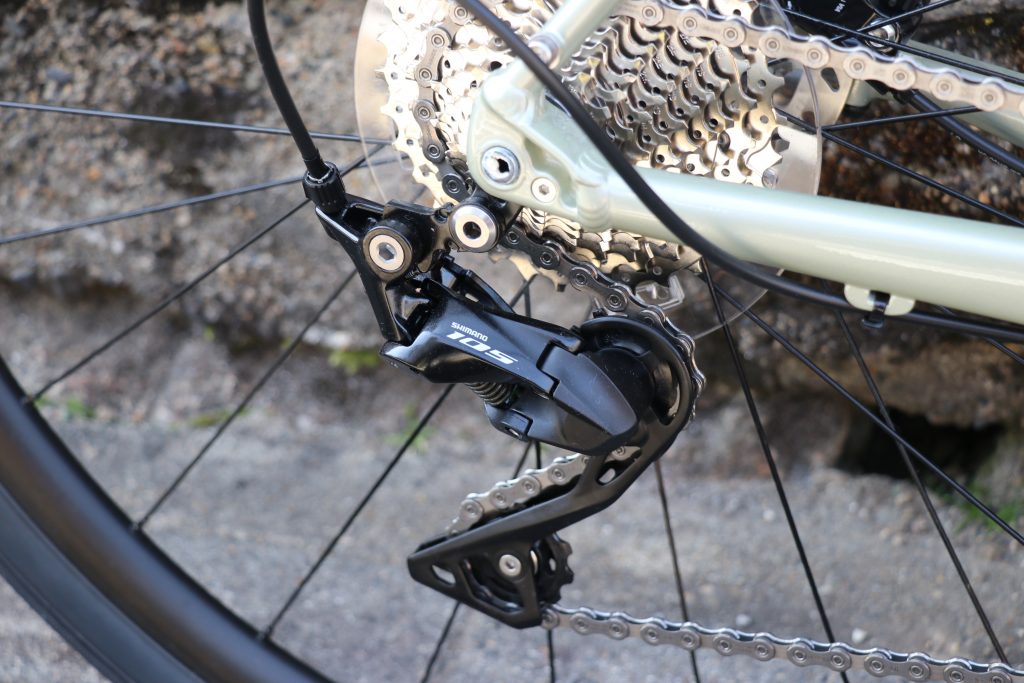 そして、R7000の目玉と言えば、やはりリアディレイラーの形状。MTB由来の張り出し少なく・キャパシティの広い形状はMAX36tまで使用可能。