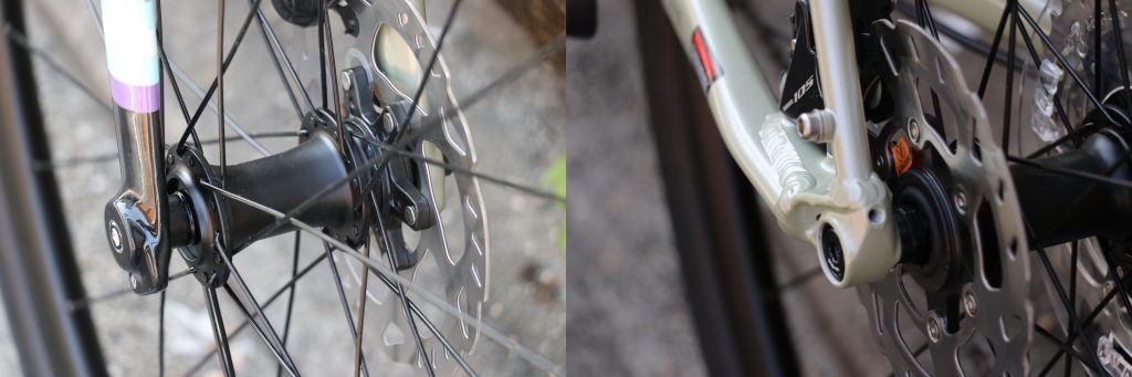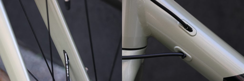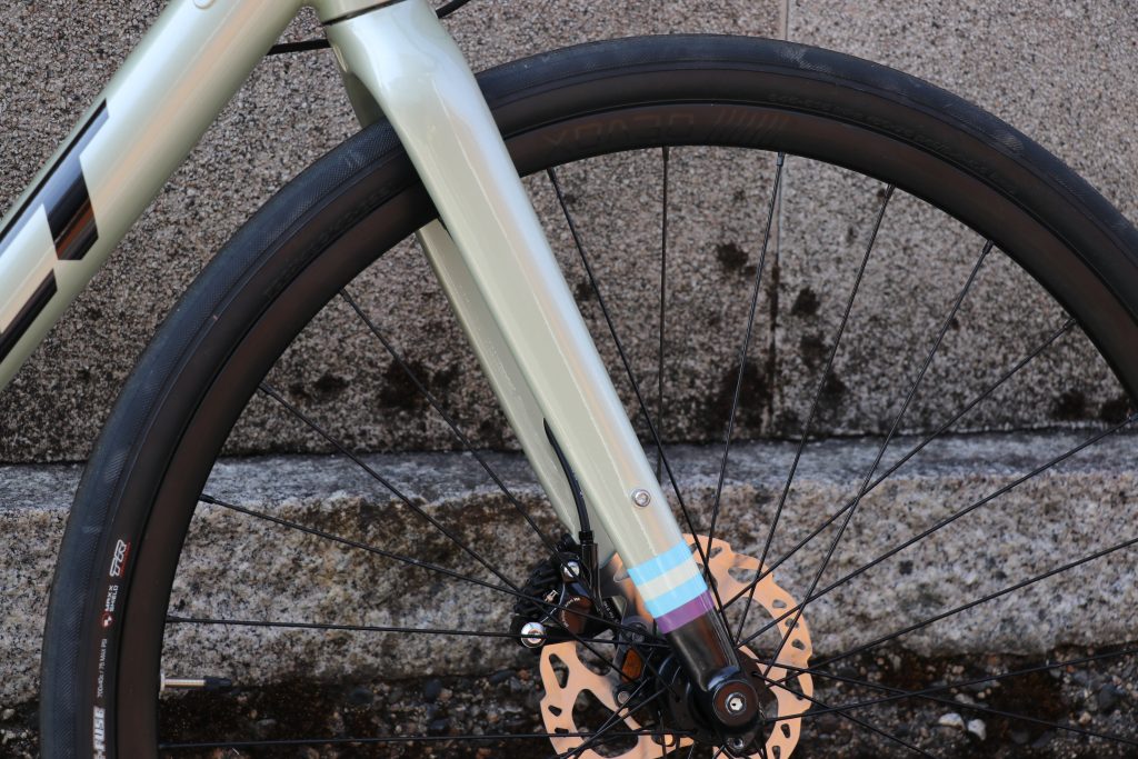 特に制動力高い油圧ディスクブレーキのパワーをしっかりと受け止めてくれると共に、立ち漕ぎやコーナリングでの車体のたわみを抑えてくれます。