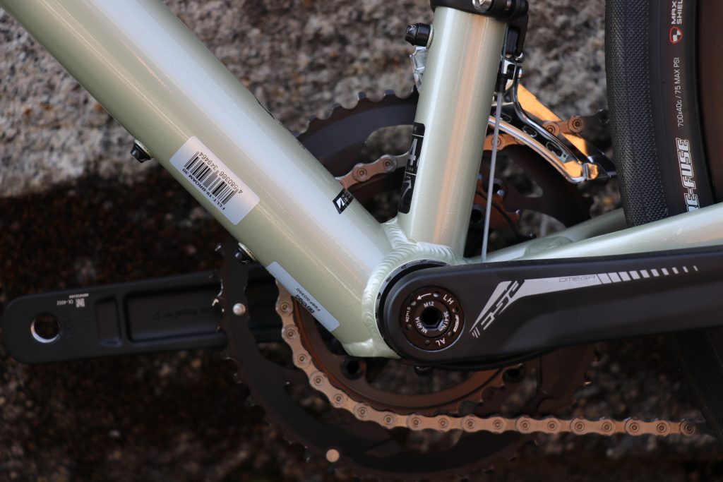 これにより、BBシェル周りを過度に肉厚に作らずとも、ペダリングを受け止める剛性を確保。