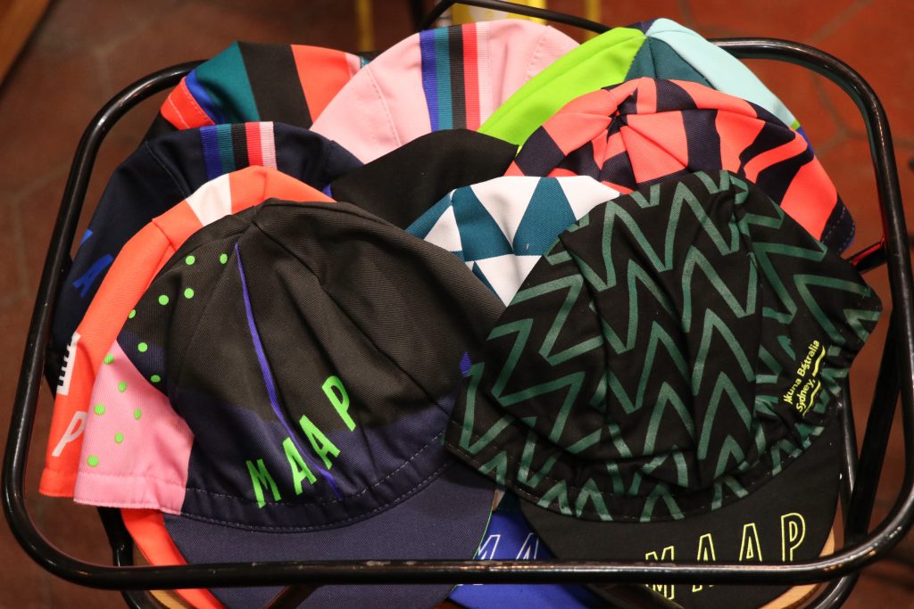 従来通りのMAAPによる独特のデザインに加えて、今回はMAAPが世界各地のショップとのコラボイベントの際に作ったカスタムキャップ等アイデアの取り入れ方が面白いのもポイント。