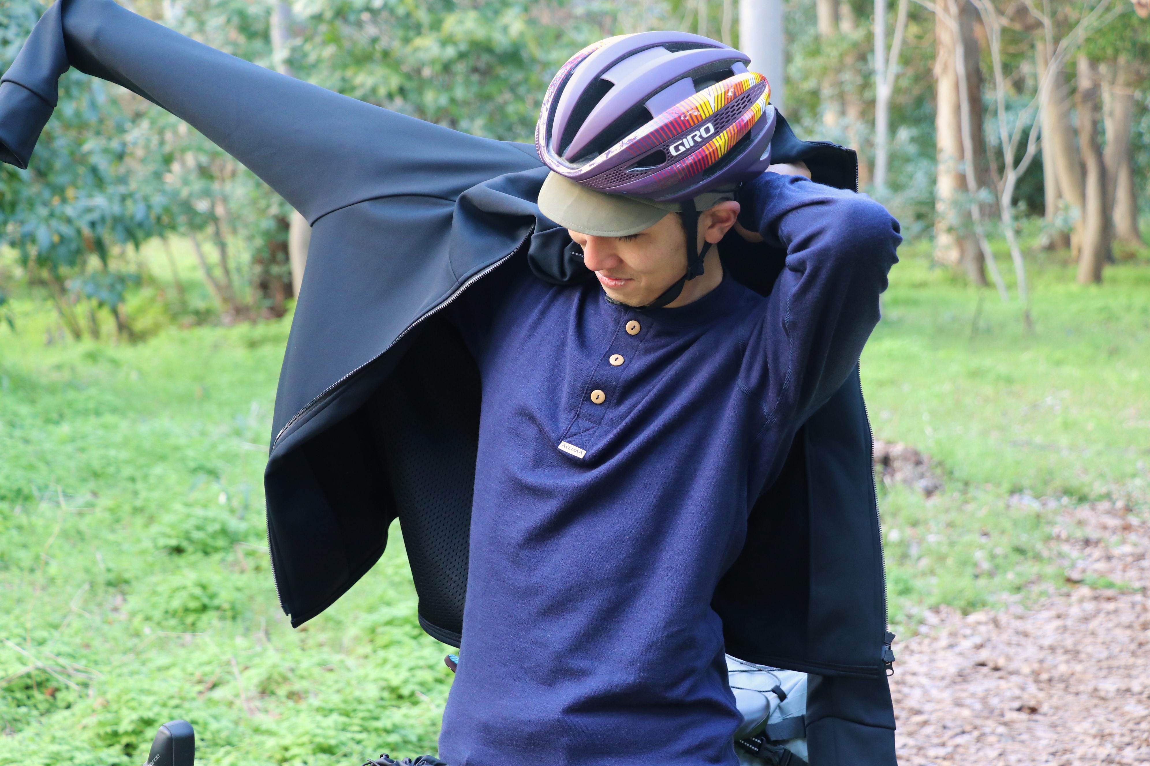 乗る距離やその際中に立ち寄りたい場所、またその目的地での過ごし方によっては、ACLIMAのような普段着にも落とし込みやすいウール素材のアウトドアウェアや、ファッション性高く&自転車に乗る時に便利なギミックが効いたCCPのウェアアイテム類、GIROやPOCなどのギアが活躍します。
