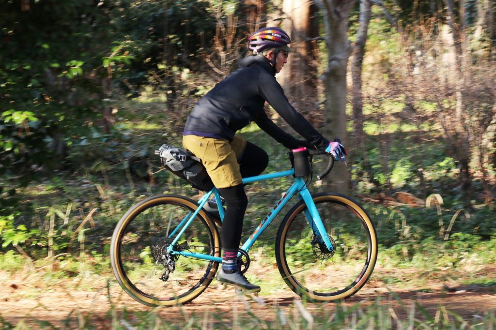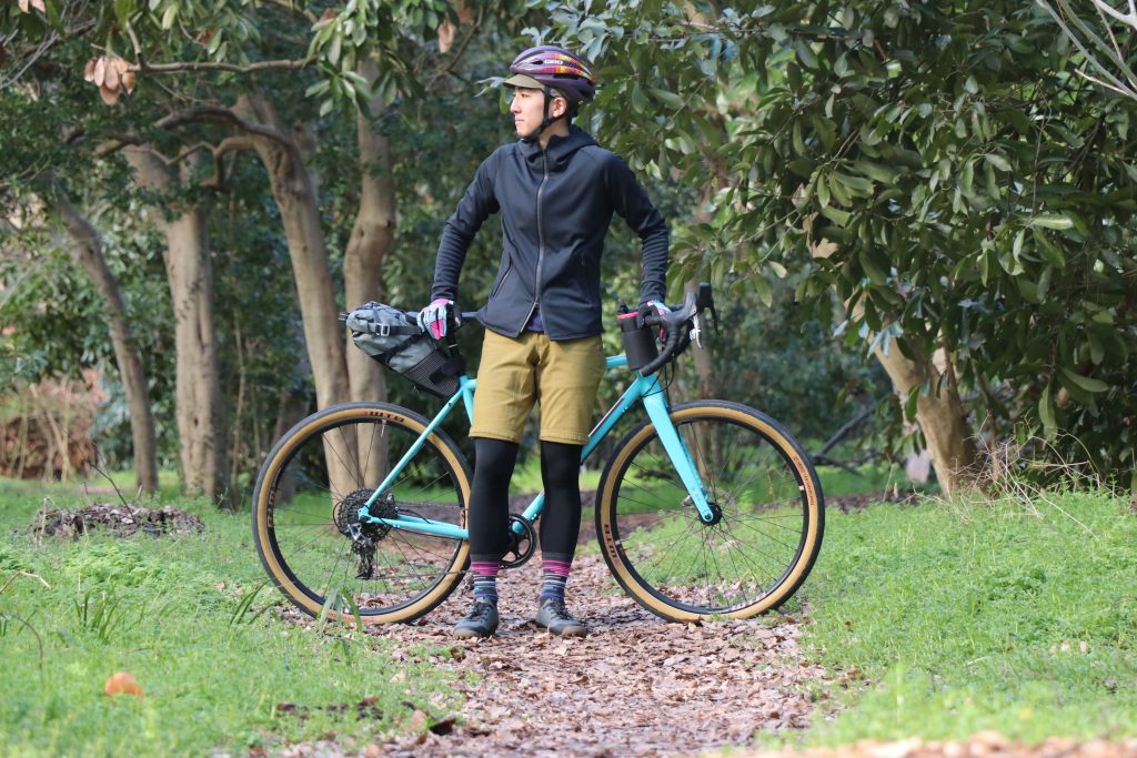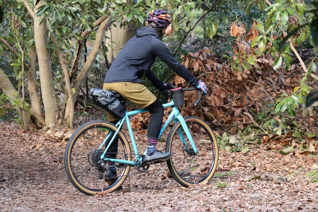 特にグラベルライドやキャンプツーリングなどアウトドアフィールドへ立ち寄る際は、むしろサイクルジャージやレーサーパンツよりもアウトドア系のほうが様になるし、防水性や耐久性など実際便利な場面も多くありますね。