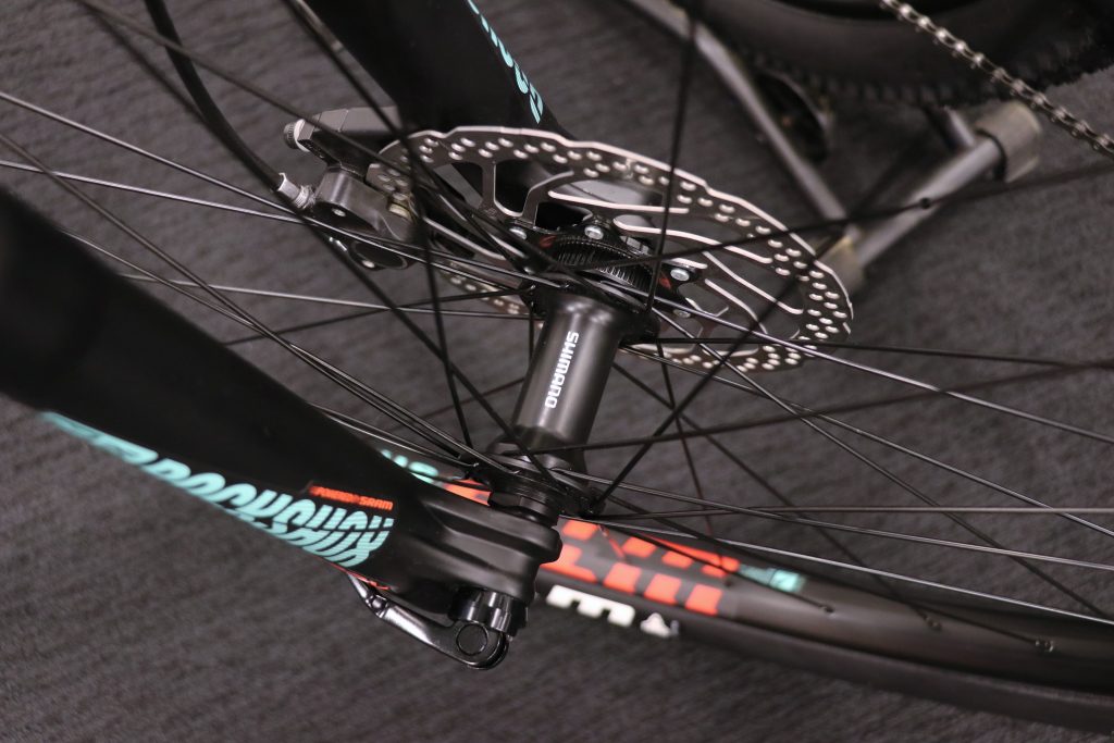 ノーブランド系の完組みホイールを使わず、ハブは前後共にシマノ採用なのも非常に良心的。