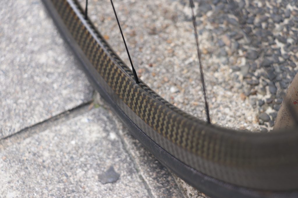 フルカーボンチューブラーリムにハブボディもカーボン。所有欲も満たしてくれるデザイン。