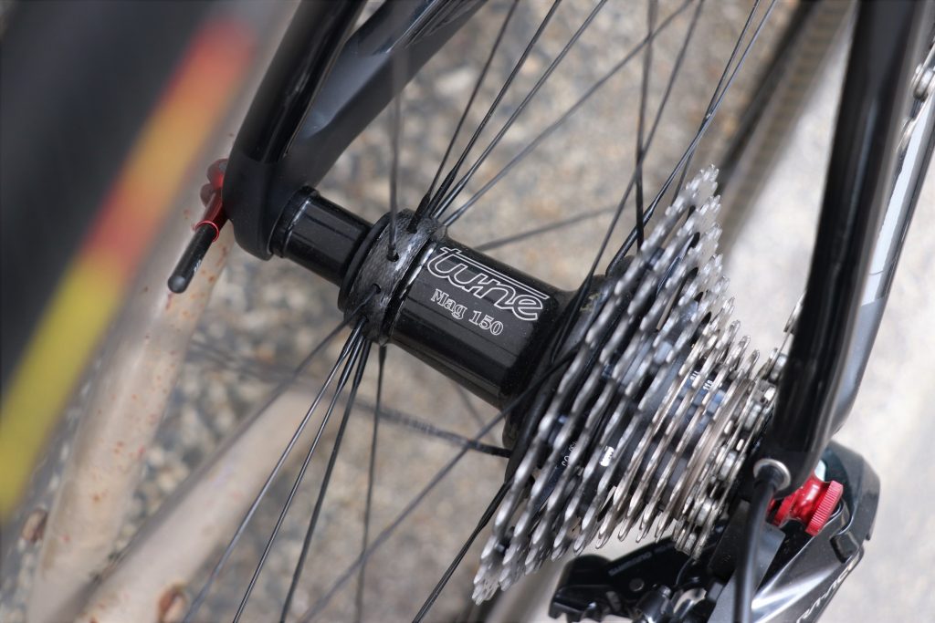 フレームの軽さはもちろん、後ほどご紹介するパーツアッセンブルも相まって、完成車重量5.94kgと超軽量クラスに仕上がっています。
