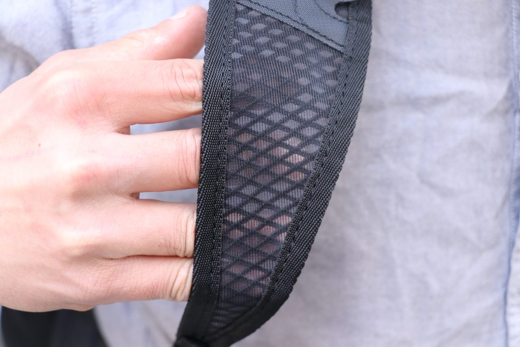 ショルダー部はメッシュ加工されております。軽量の一手を担うとともに、汗蒸れを防止します。