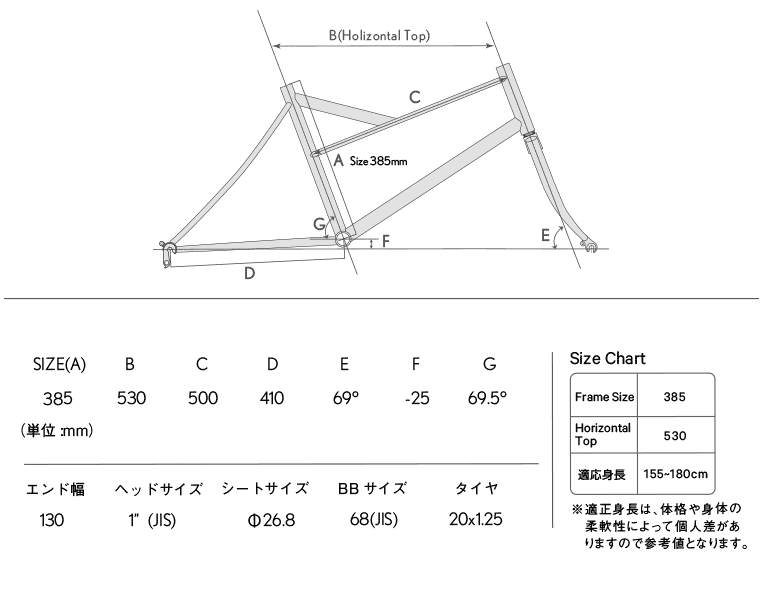 前後からの振動をトップチューブで吸収するフレーム設計と先曲げのフロントフォークによって、最高の乗り心地を実現し、街乗り~ロングライドまで多方面に活躍するミニベロロードです。