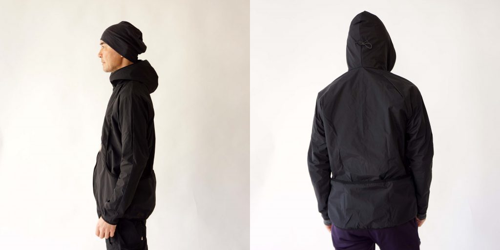 フードをかぶった時には後頭部のジッパーでしっかり絞れるのも使いやすい機能。