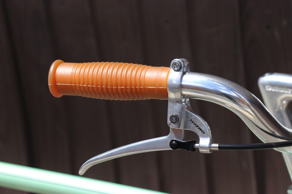NITTOテクノミックステムにプロムナードハンドル、指のかかりが良く(効きが良いという事です)MAFACのような形状のTEKTRO FL750レバー、グリップにはフランスの老舗ブランド、【RUSTINES】Constructeur Style Rubber Gripが何とも味がありますね。
