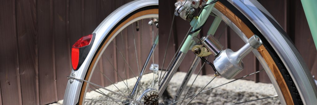 チェーンステー右側上に配置されたダイナモは、フロントリア両方点灯します。