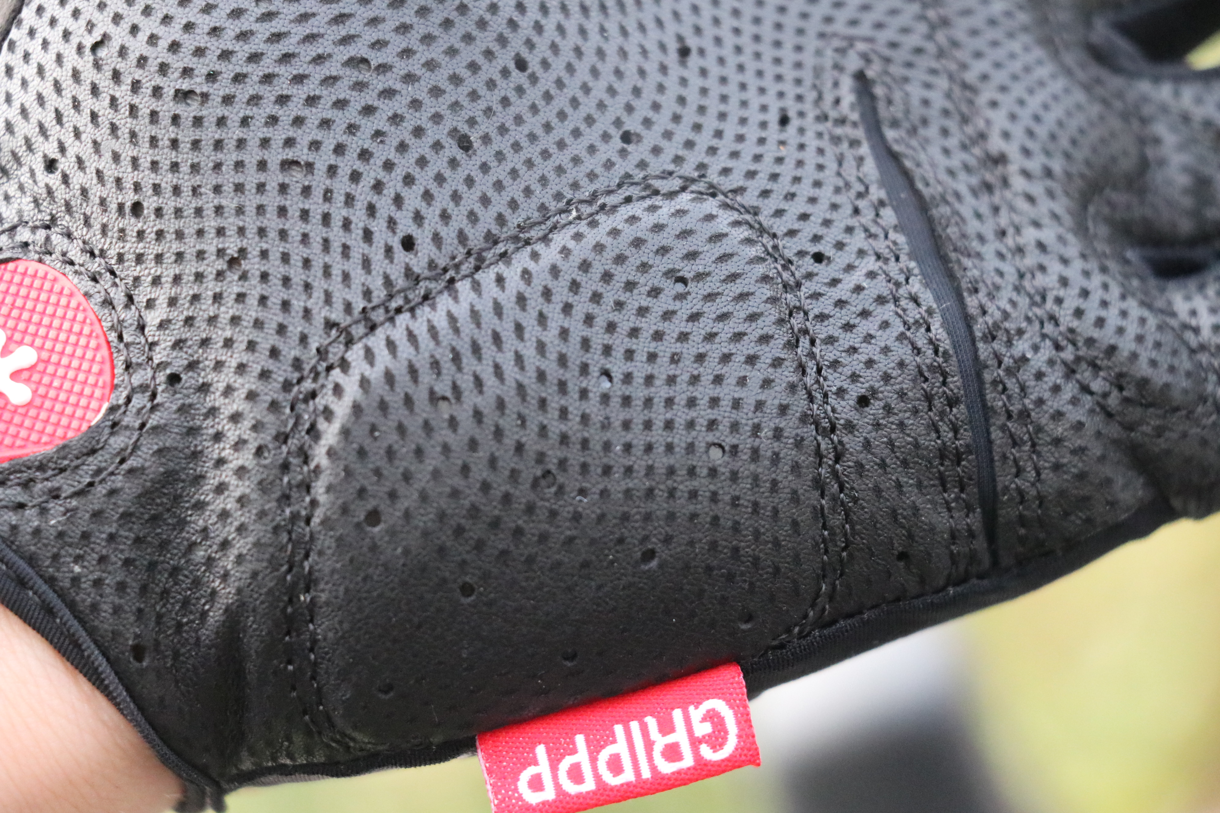 手の甲側はメッシュ(一部ライクラ)、衝撃吸収に優れた肉厚のパッドを手のひらの3か所に配置した快適性重視モデル