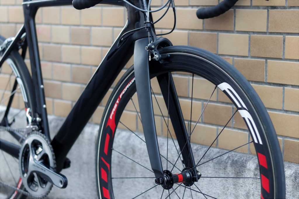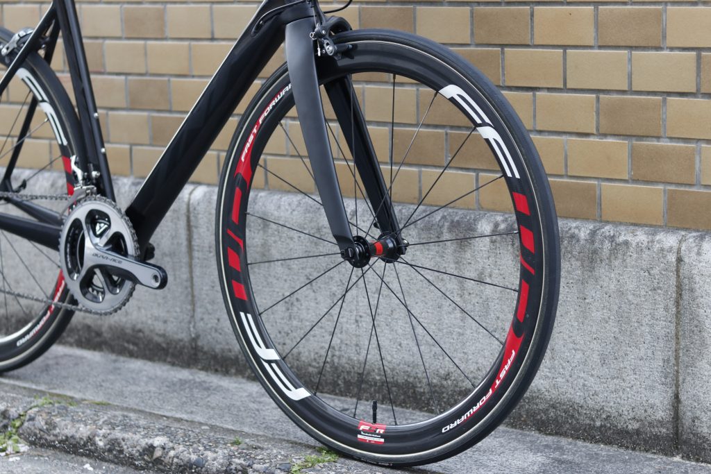 ホイールはFFRDのF4R。迫力ある45mmハイトのカーボンチューブラーのディープリム。