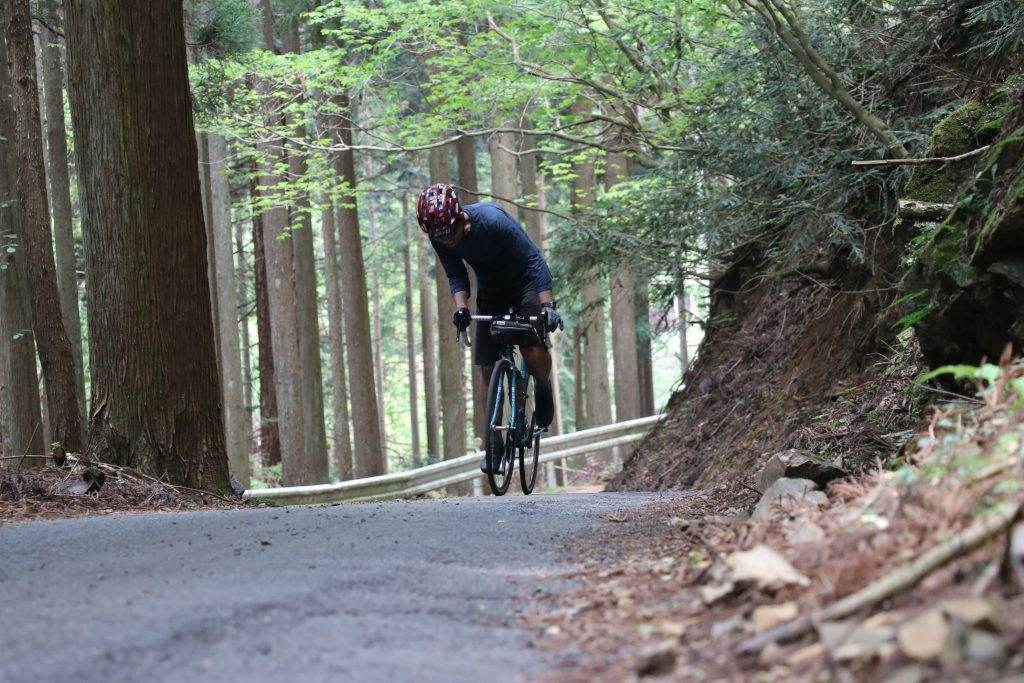 楽しそうにスイスイ花脊峠を登るKさんは朝5:30~ライドしてからのハテナサイクリングとちょっと凄すぎます。僕ならヘロヘロになっちゃいます。
