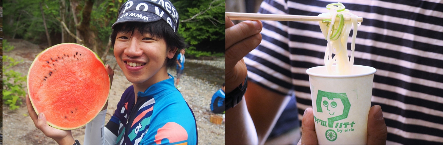 また昼の休憩時に立ち寄るキレイな河原では、ふるまいソーメン、ふるまいスイカなども◎