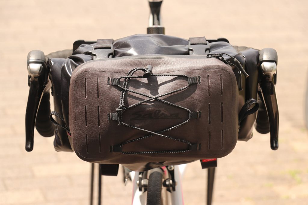 フレームサイズ小さめ /ヘッドチューブ短めの車体でも無理なく取り付けOK!便利なハンドルバーキャリア&防水バッグ【 SALSA CYCLE / サルサ 】EXP SERIES ANYTHING CRADLE PLUS DRY BAG AND FRONT POUCH