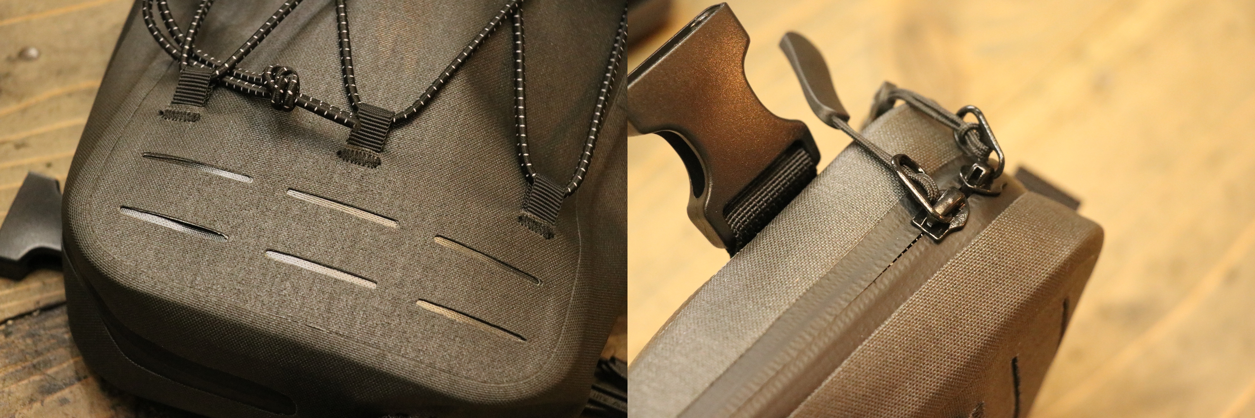 縫製ではなく溶着での成形、また止水ジップ仕様なので雨のライドでも心配少なくありますね。