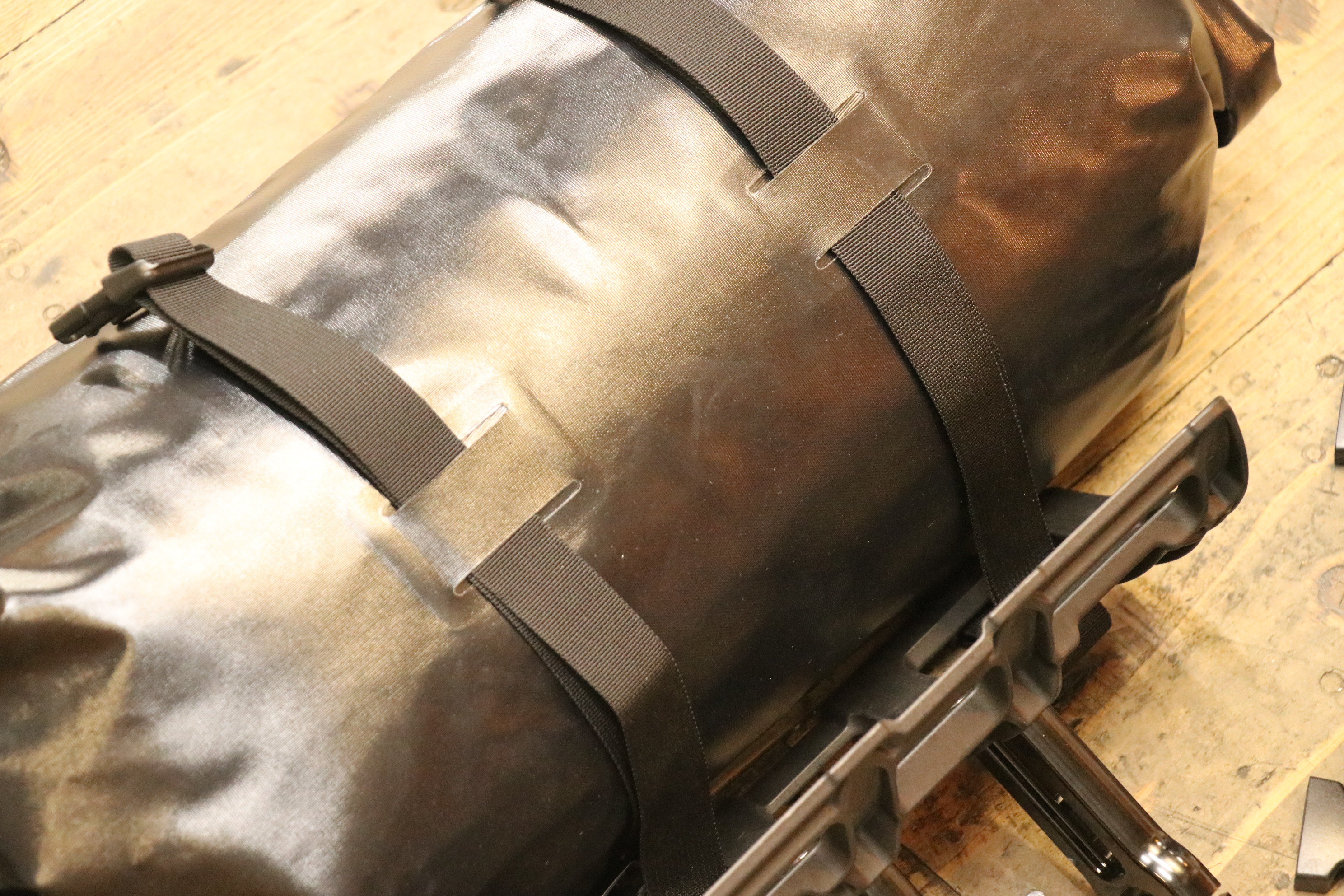 キャリアレス積載アイテム「バイクパッキング」の軽量性と、キャリアならではの荷物の積載安定性をミックスしたようなアイテムです。