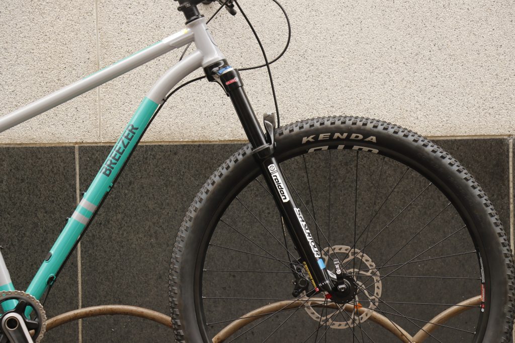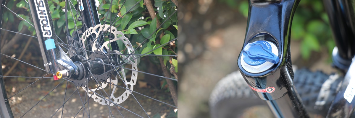フロントフォークには、軽量&高品質なSR SUNTOUR RIDON RLエアーサスペンション 120mmストロークが採用。勿論BOOST規格。ロックアウトもOK。