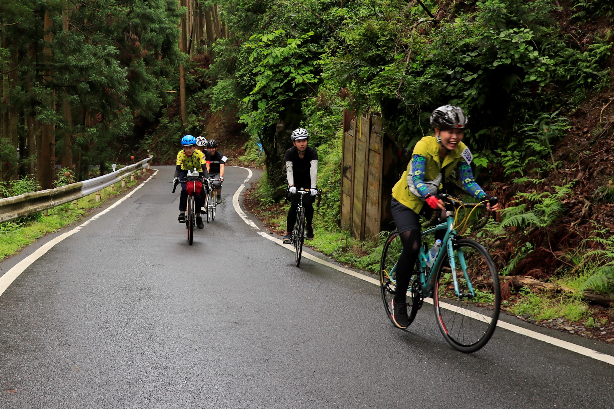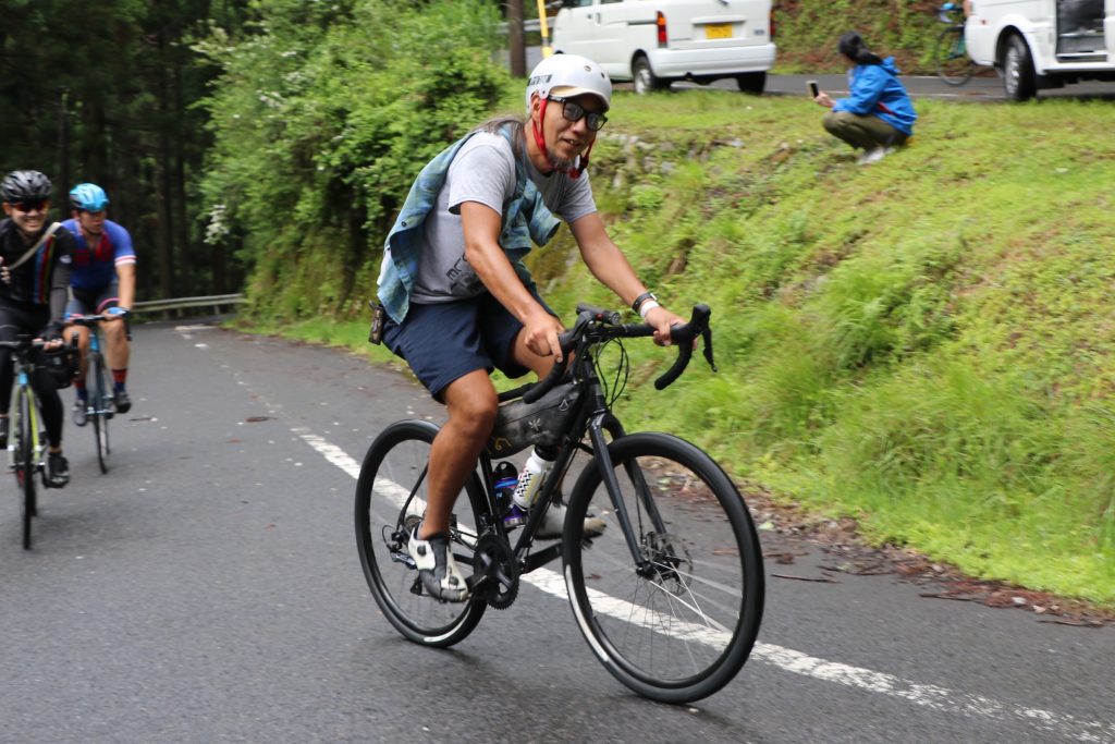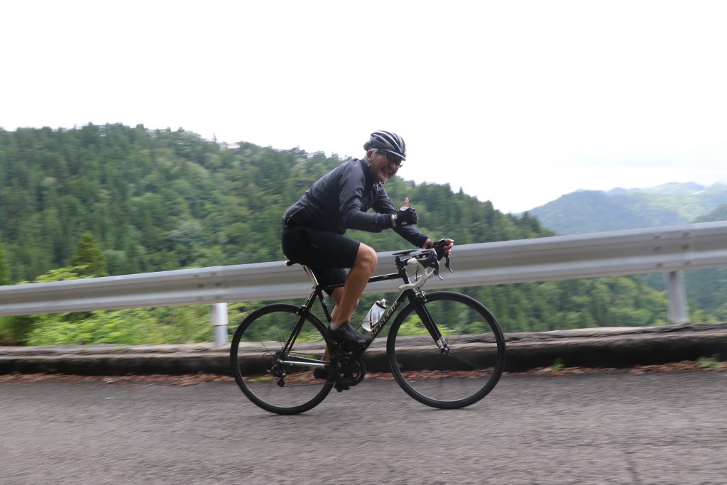 しょっぱなから驚きました!キツイ事で知られる花脊峠を、結構みんな笑顔で登ってくるんです!