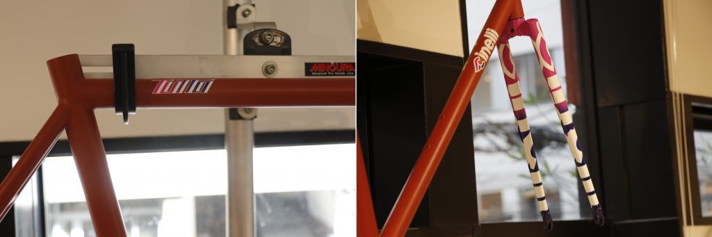 ダブルバテッドされたクロモリフレームで車体重量を抑え、フォークもクロモリでベンドしているので振動吸収や乗り心地の良さに一役買っています。ちなみに完成車のラインナップの中では最安値であり、チネリブランドの所有欲を満たしてくれます。