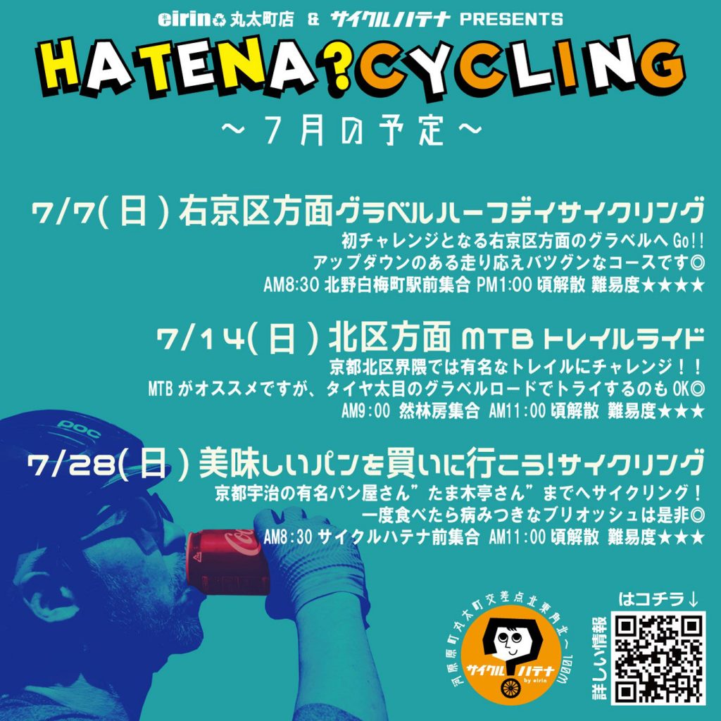 ★eirin丸太町店&サイクルハテナ主催★【HATENA? CYCLING/ハテナサイクリング】 2019年7月の予定 & メンテナンス講習会の 御案内です!