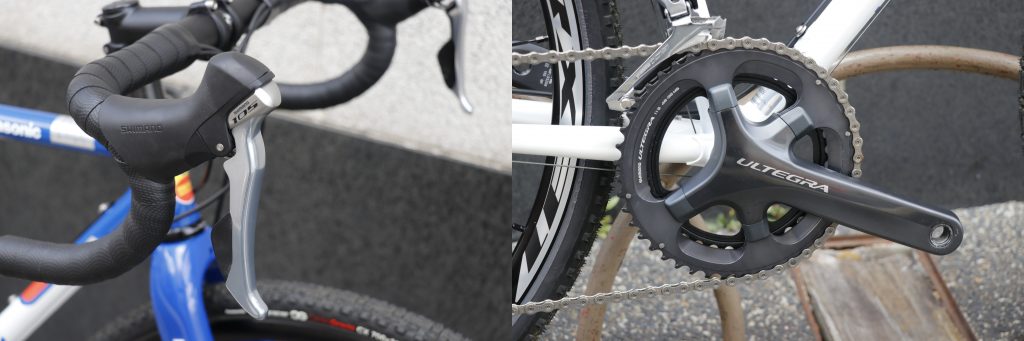 46x36tのシクロクロス・ダートライドにちょうど良いギア比とULTEGRAクランクの高い変速性能によりストレスフリーと嬉しいミックスコンポです◎