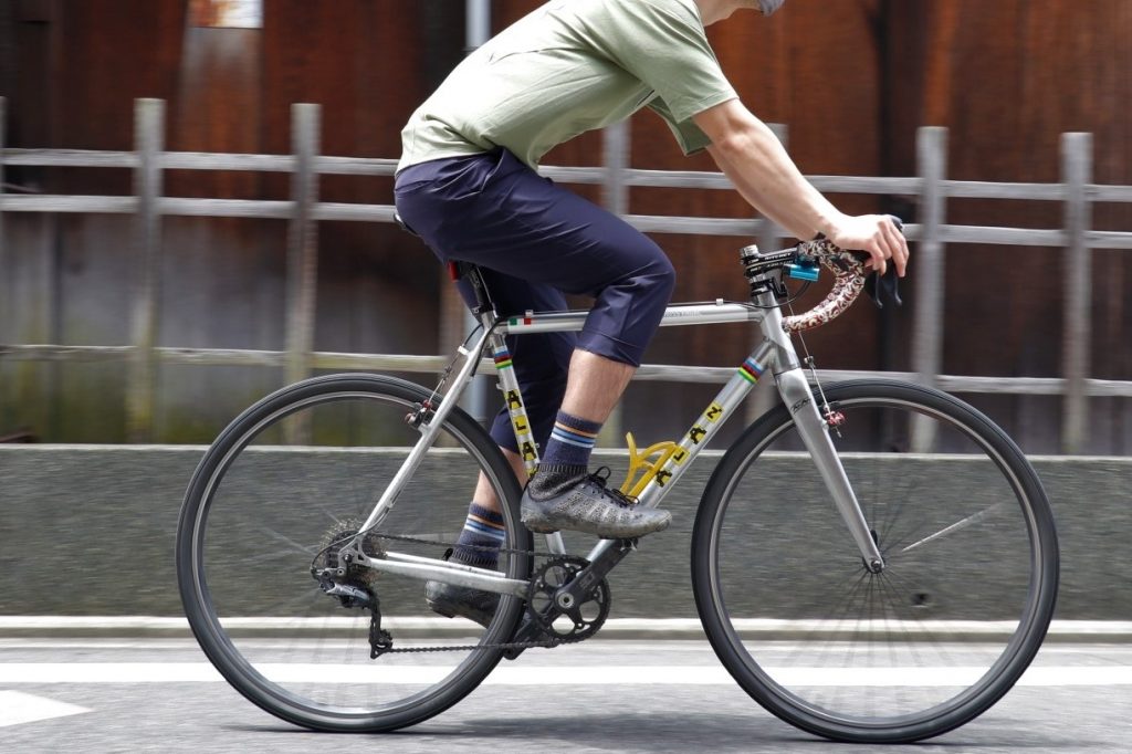 また太すぎなず裾にかけてテーパードしたフォルムは風の抵抗を生まず、チェーンオイルで裾が汚れる事もありません。