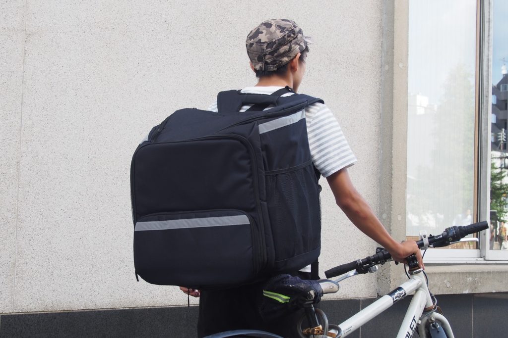 最近よく見かけますよね?おっきな四角いバックパックを持って自転車に乗っておられる方。
