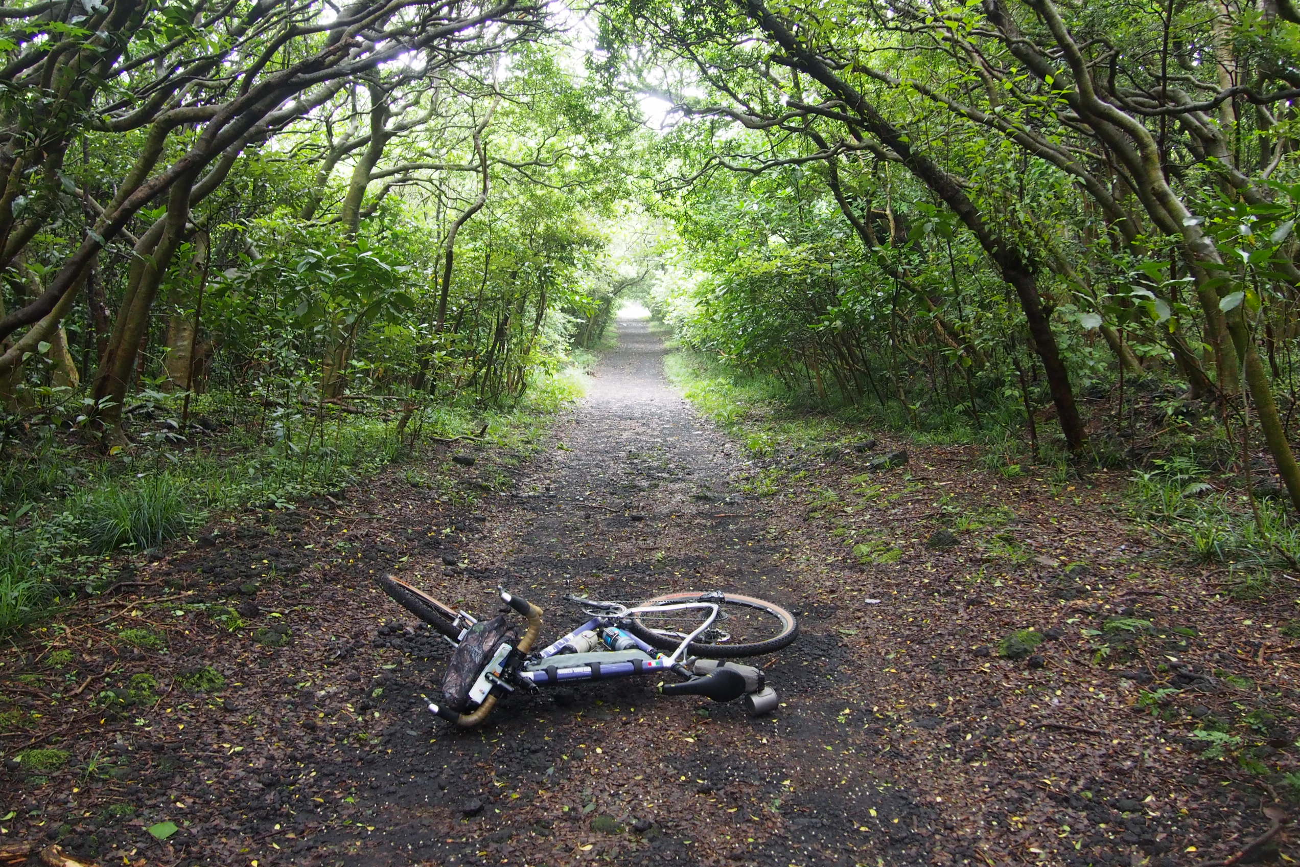 山の頂上からは、木のトンネルで覆われたグラベルがありました。木の匂いがとっても癒されます。