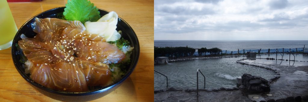 山を下りてからは、海鮮丼くったり露天風呂に入ったり。