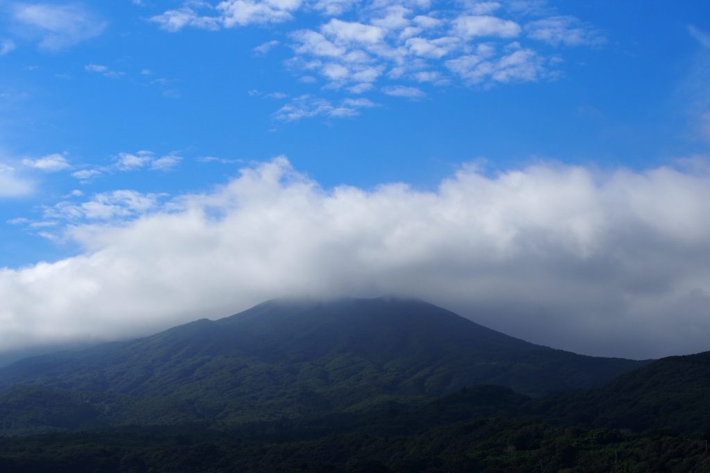 さて今回のメインはあの山の頂上。しかしありゃまあ。天気は良いものの頂上のみしっかり雲がかかっておりますね。。