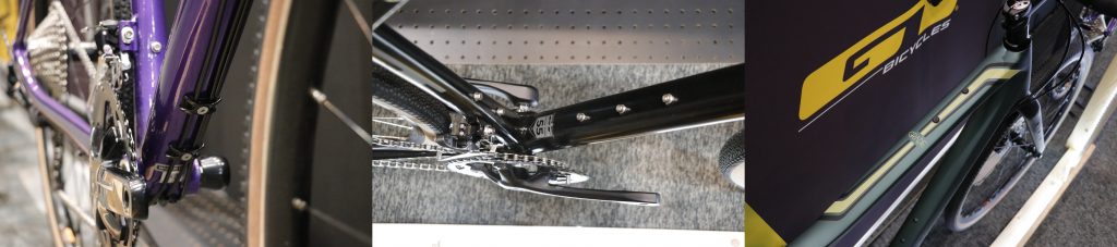 トップチューブ上、ダウンチューブ裏、ダウンチューブ上には3穴のボトル台座が配備されます。