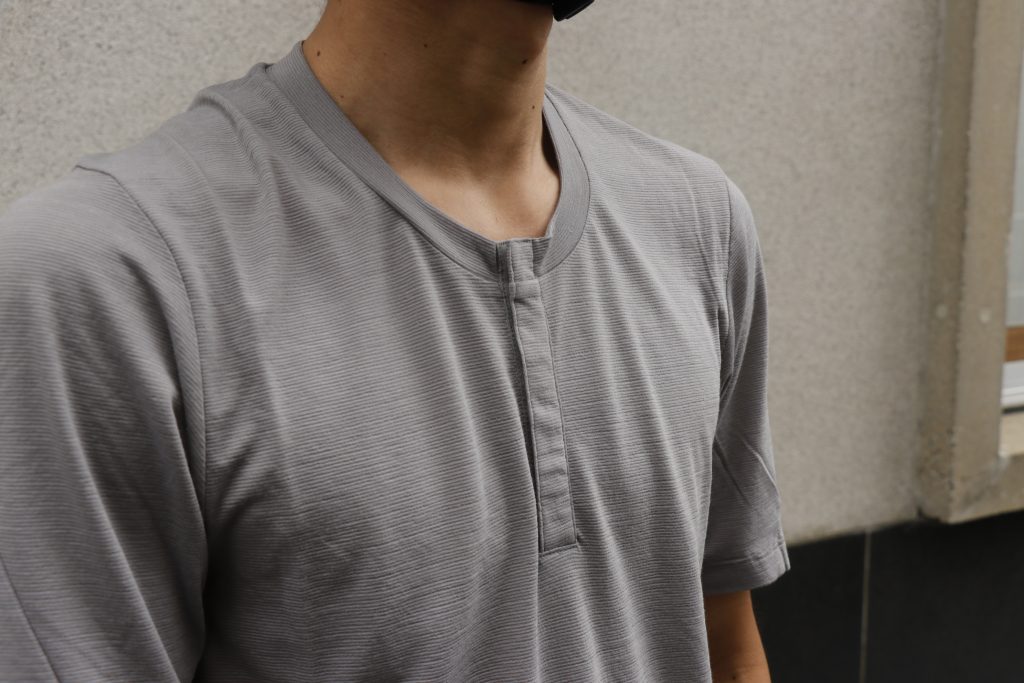 しかしながら「エラスタン」を採用しない=伸縮性に乏しくなるところを、通常よりも強く練られた糸を採用し、それを特殊な編み方で生地にする事で「ストレッチ/伸縮性」を確保し、更に高い速乾性を備えた仕上がりとなっているのです。