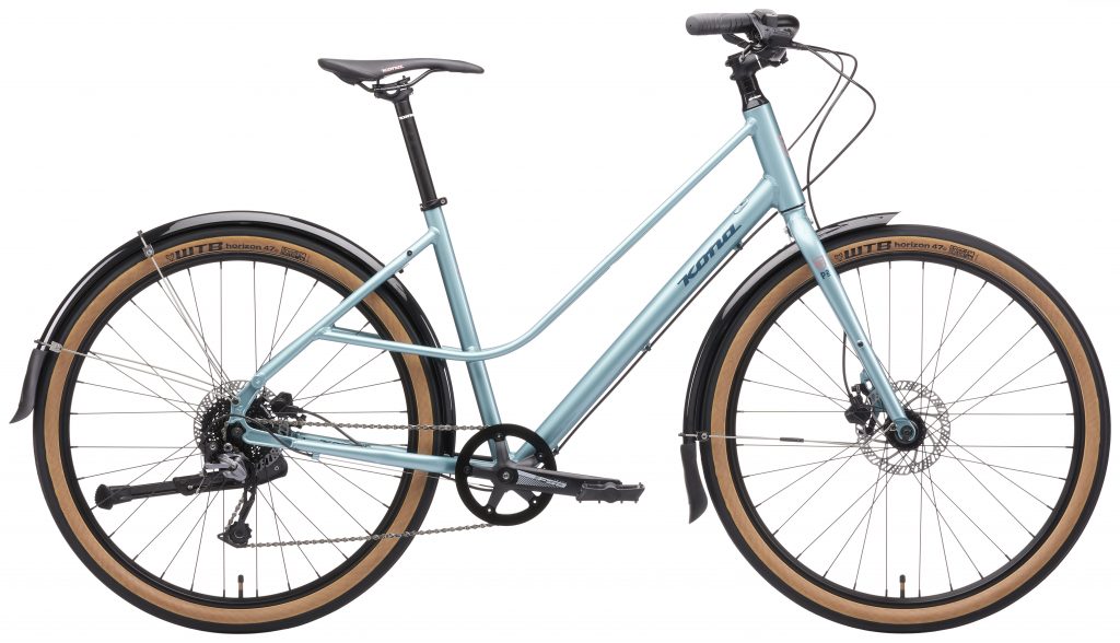 チャイルドシートとの相性も良い跨ぎやすいミキストフレームながらも、油圧ディスクブレーキ、650Bタイヤ規格を採用した他社にはない実にKONAらしい一台「ココ」。お買い物用に街乗りに女性の方にも是非オススメしたい一台です。2021はさわやかなブルーで展開!