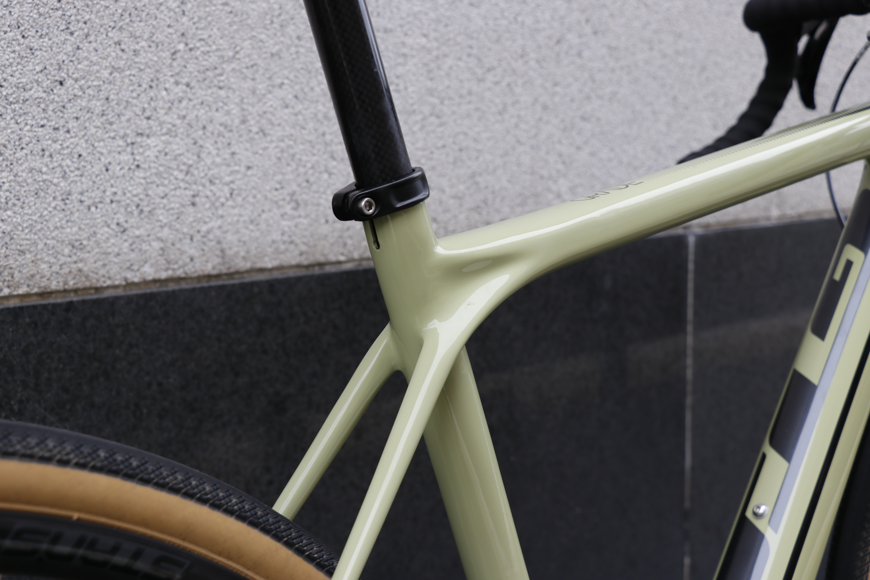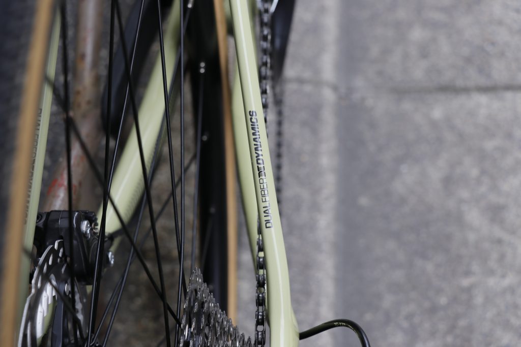 極細部分は中空になっておらず、カーボンとグラスファイバーを使用したデュアル設計。しっかりとしなるものの、高強度に仕上げてあるので安心してグラベルライドを楽しめます。