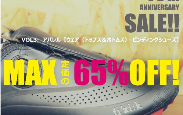 【サイクルショップeirin丸太町店 オープン10周年記念 第三段】 期間限定(*2019年8/31まで!)最大定価の65%OFF!!セール★~アパレル(ウェア&シューズ)~ のご案内!