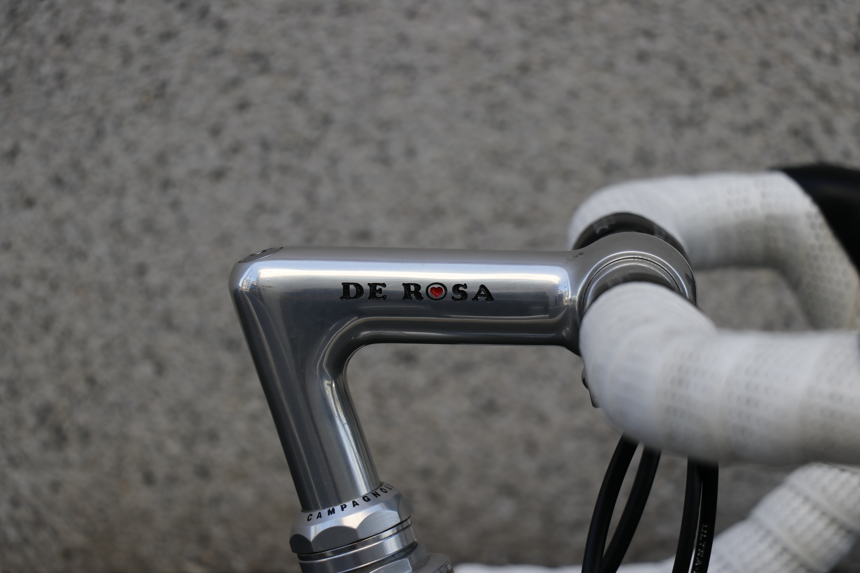 ウーゴデローザはシマノ嫌いで当時カンパしか使用しなかったことは有名な話。デローザといえば、やはり同じくイタリアンブランドのカンパ組みで。という方も決して少なくはないかと思います。
