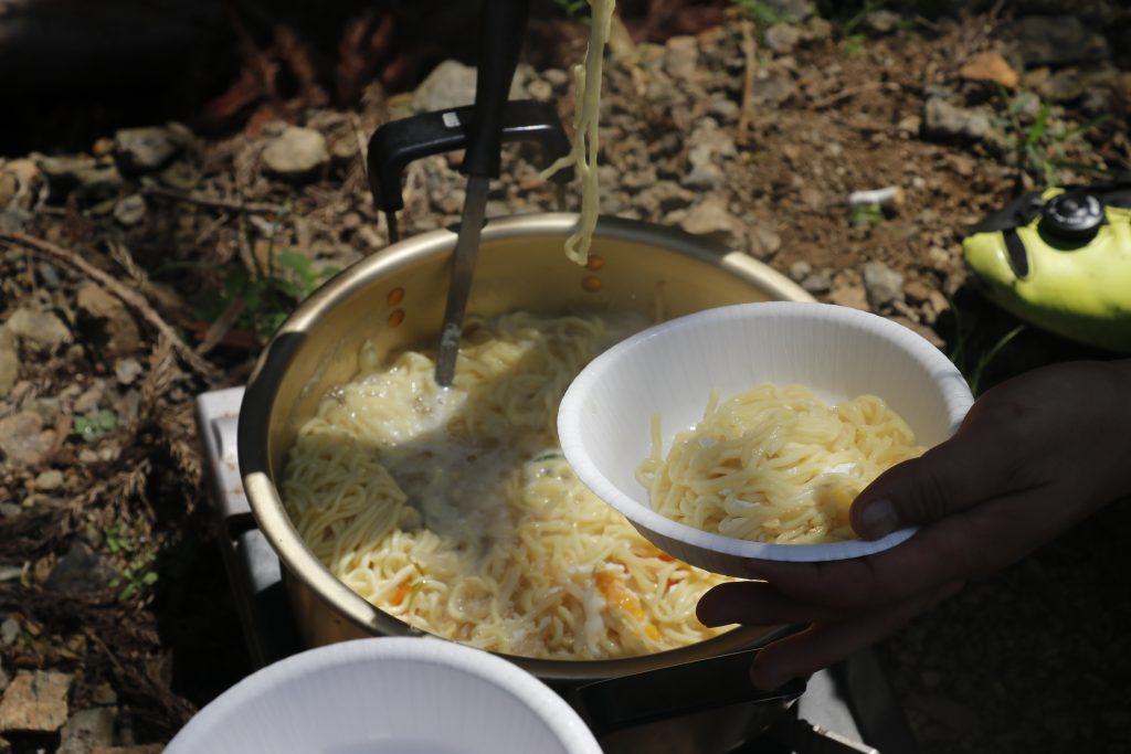 河原で遊んでいれば、あっという間にラーメンの出来上がり!
