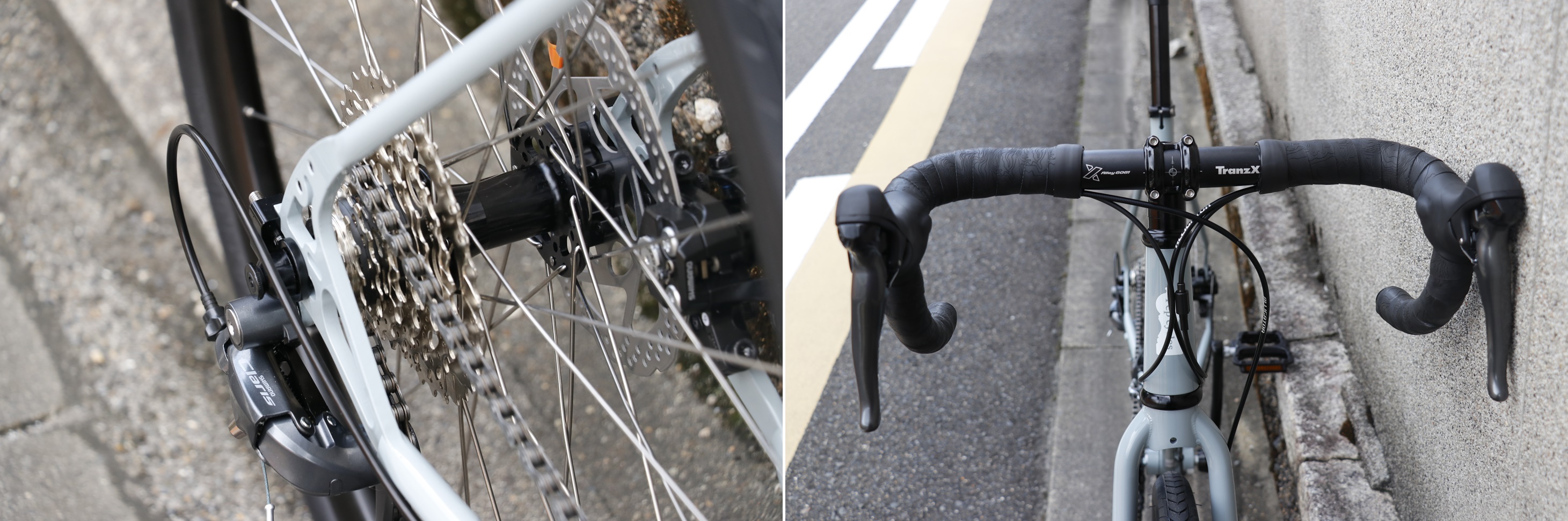 合計約3.8万円(税別)のチャージアップで、標準のシングルスピード⇒ロングライドにも適した「2x8スピード」&「ドロップハンドル」仕様へカスタムする事ができました。