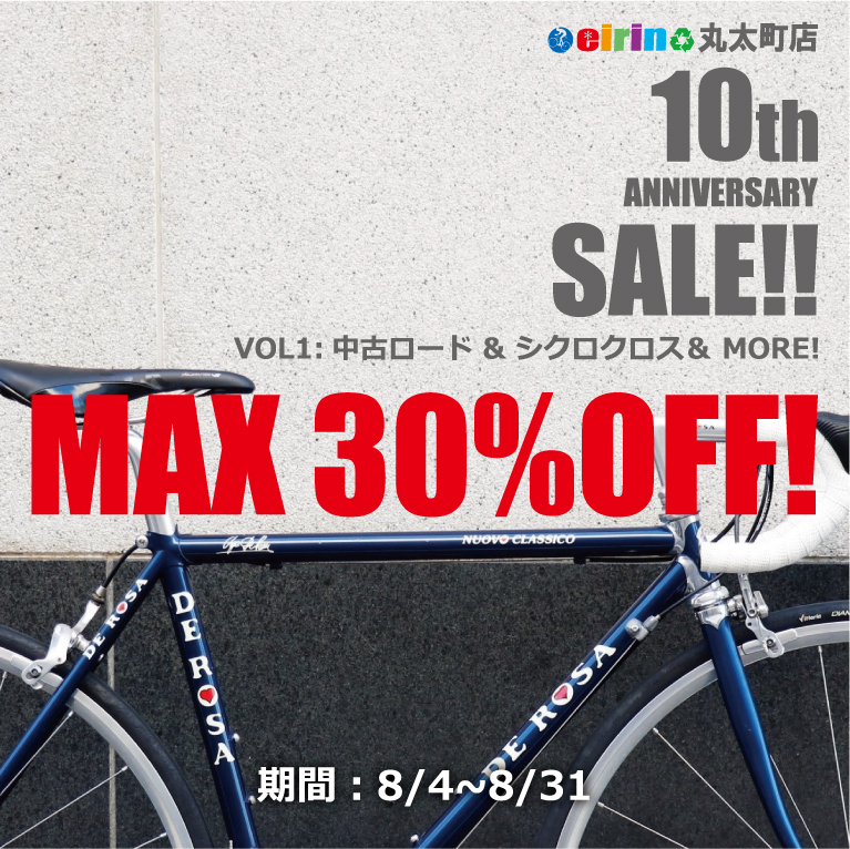 2019.08.24 BLOG , eirin丸太町店 , SALE情報 , サイクルハテナ(eirin丸太町店別館)8/7をもってオープン10周年を迎えました当店。”10周年という事で今年は例年より増して盛大にSALEを行っておりますが~、そんな