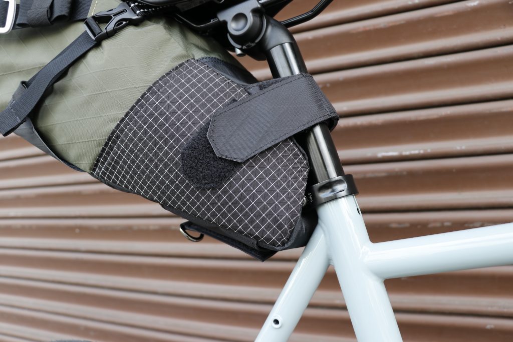 シートポストにマウントするストラップの角度もポイント。