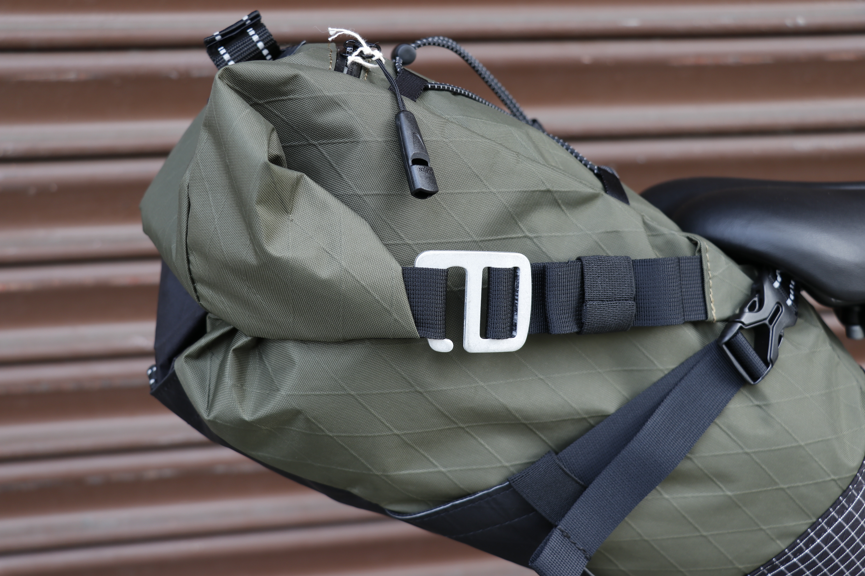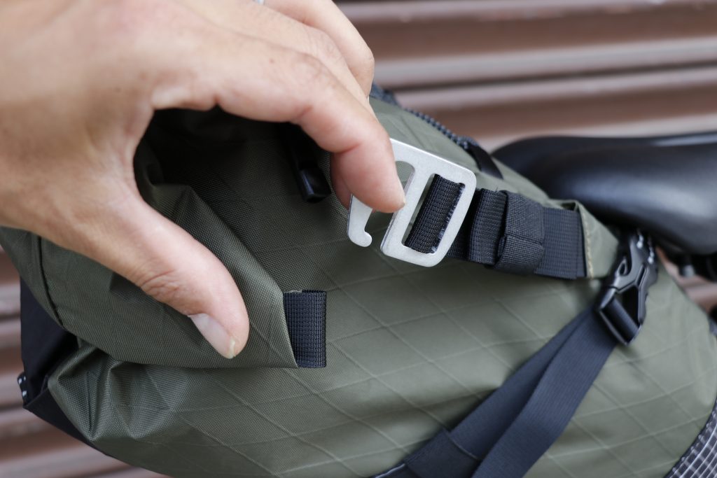 バイクパッキングを想定した容量8~10Lのロールトップ式サドルバッグです。