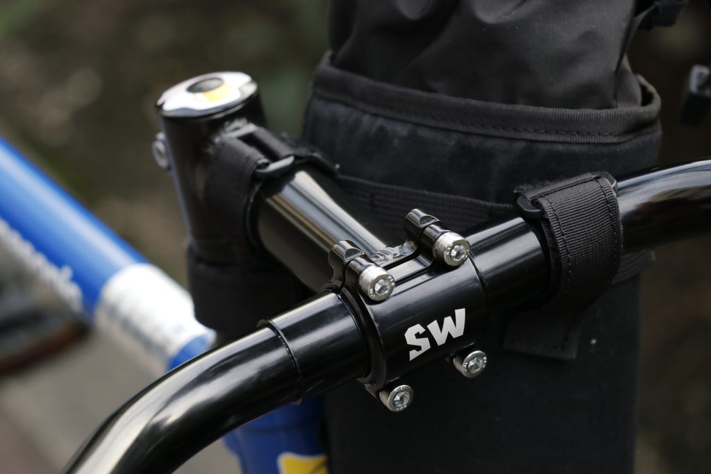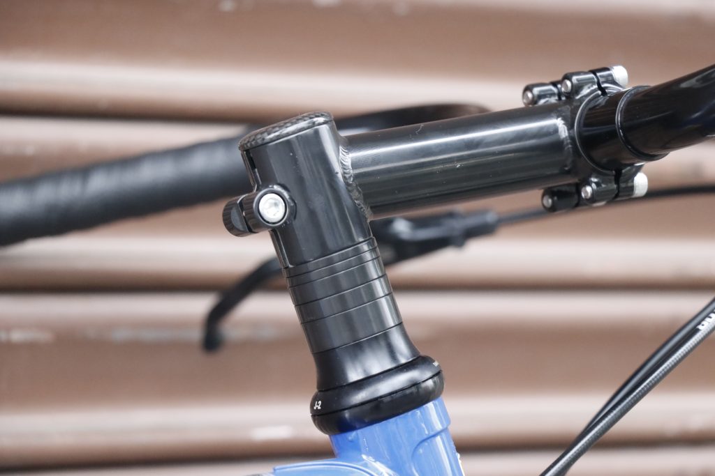スッキリしたフォルムがハンドルとも似合いの良いクロモリステムSimworksxNittoのWENDYステムをチョイス。