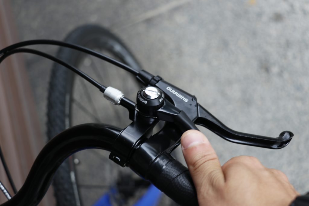 フロントシングル化とハンドルカスタムに合わせてシフターはサムシフターをチョイス。
