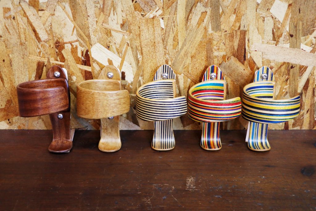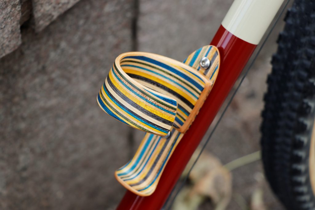 【 SYKES / サイクス 】Wooden Water Bottle Cage / Recycled Skateboard(ウッディンウォータボトルゲージ / リサイクルドスケートボード)