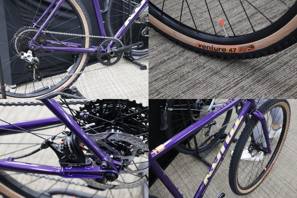 毎年圧倒的な人気を誇るクロモリフレーム&フォーク、前後スルーアクスル対応のROVE STはタイヤが当店スタッフ内でも使用率高い「WTB VENTURE 650Bx47C」が装備。よりグラベルライドに適した仕様に。