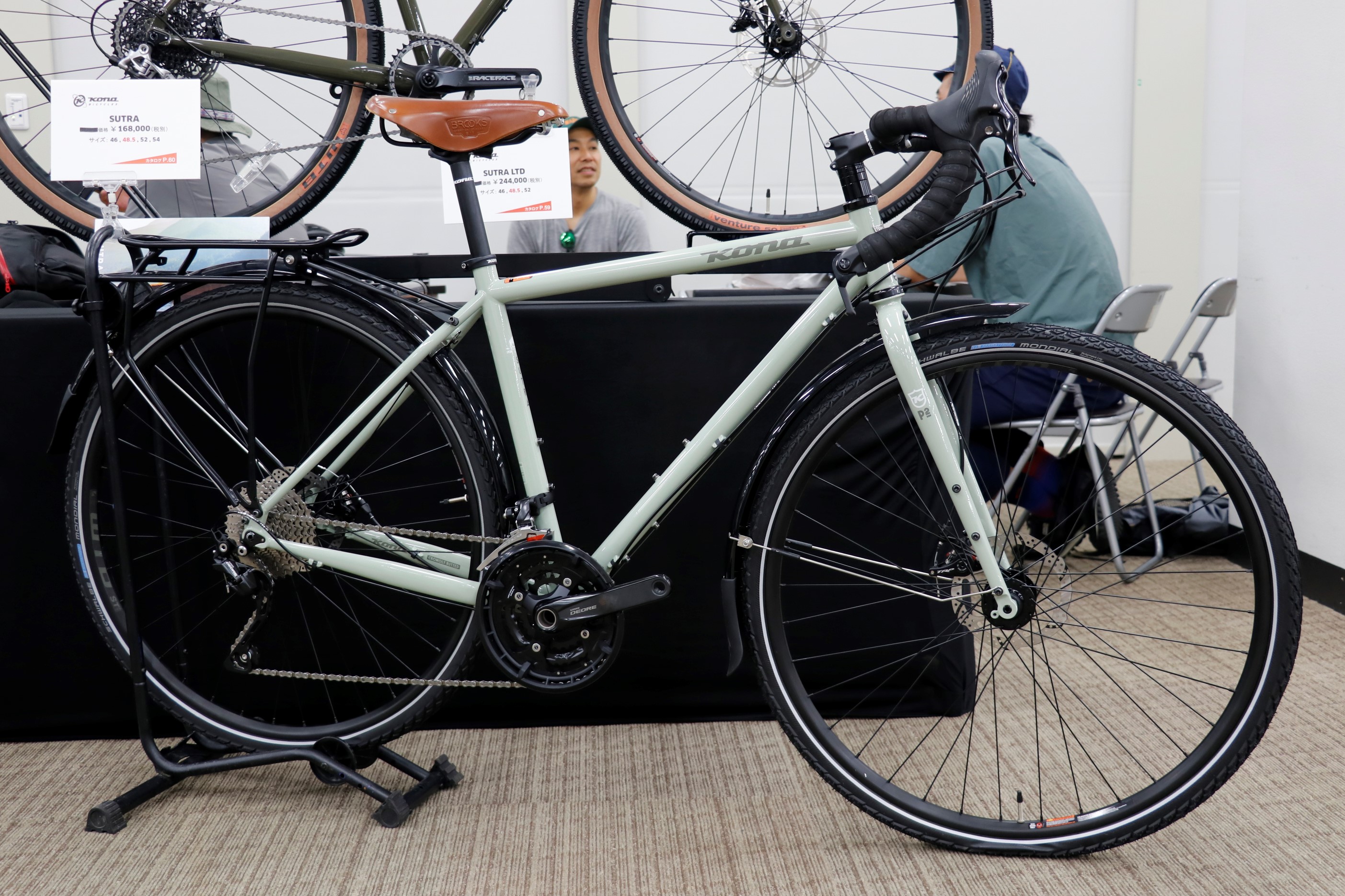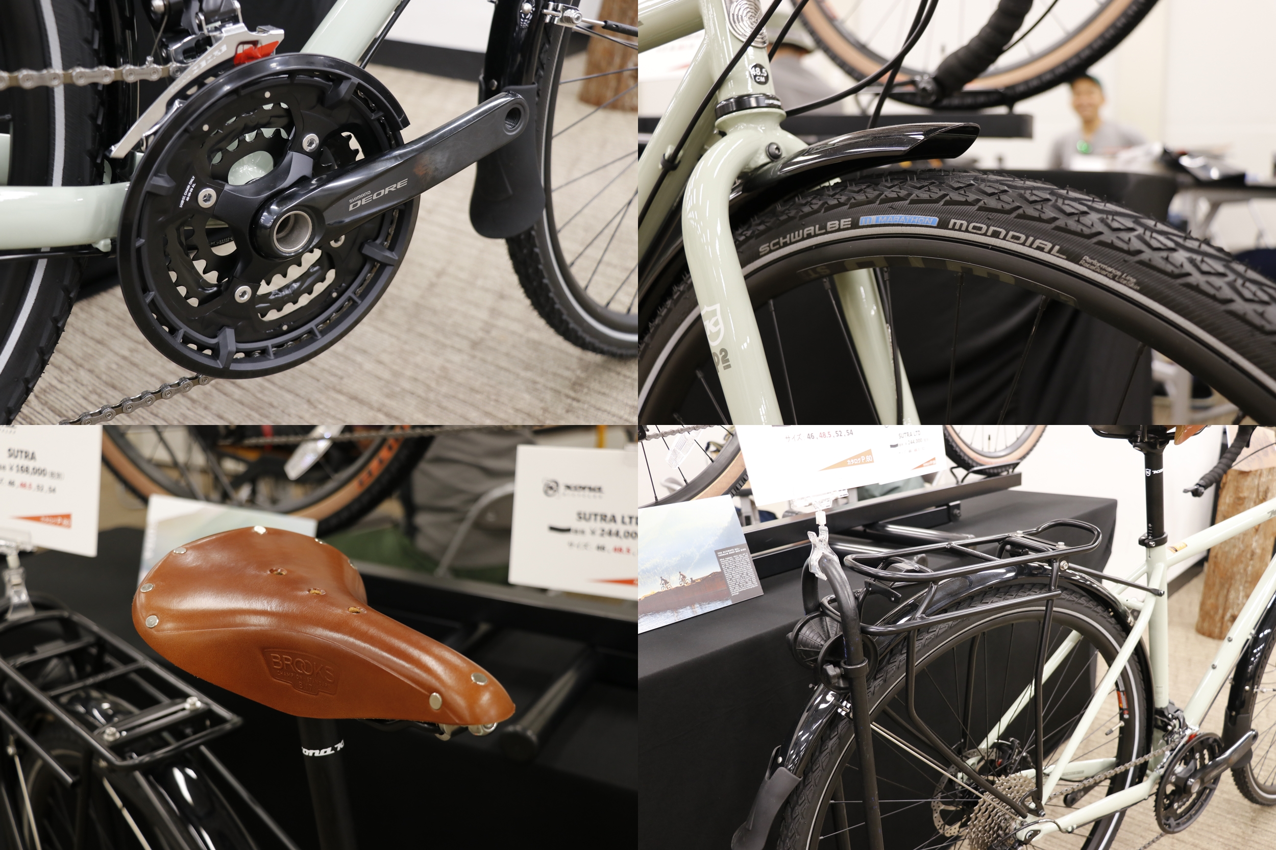 シュワルベマラソンタイヤ、前後フェンダー&リアキャリア、本革レザーサドルBROOKS B17と、リアルな長旅において最適なパーツ選定が標準装備されている、KONAのツーリングカテゴリーにおける最も歴史あるモデル「SUTRA」は勿論健在。
